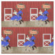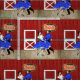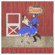 This fabric design has a vintage square dance or swing dance couple with a background made to look like a red barn with a dance floor. There is also a sign that says dance. This design is available in other layouts and sizes.