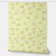 This pattern consists of overlapping squares in two distinct colours - golden yellow and deep purple - arranged on a pale yellow background. The squares vary in size, with some appearing as standalone elements while others are interwoven, creating a sense of depth and movement. Additionally, small rectangular and linear accents are scattered throughout, adding to the abstract and dynamic nature of the design.