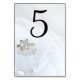 These elegant Square Diamond Ring and Pillar Crystal Wedding Table Numbers add an elegant flair to the tables at your zen chakras theme engagement party, bridal shower or marriage reception dinner. These classy custom ethereal wedding table number cards feature a close up photograph of a clear rock quartz pillar crystal with a square princess cut diamond engagement ring with a white bridal veil in the background. Clear quartz is also known as the "master healer" and "stone of power" and is said to amplify any energy or intention and makes a unique enhancement or addition to your wedding decor or theme.