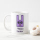 Both sides have a blocky purple bunny face with "Happy Easter" in matching text.