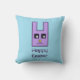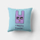 Both sides are light blue with a purple blocky rabbit and "Happy Easter" message.