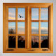 Enhance any decor with this picturesque wooden window illusion poster. The view from your faux window features an autumn scene with a flying bird at sundown. The poster was made in high definition (300 dpi) so it can be made larger without losing the image quality.
