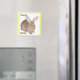 This is a fawn flemish giant magnet with yellow border, that read Fawns Shine!
