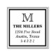 Modern address stamp design featuring your initial, name and address inside of a bold square frame.