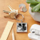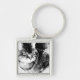 A premium square keychain with a half-burmese cat looking watchful in the way only a cat can, from a black and white photo by Judy Adamson. Other products and greeting cards with this image are available in my store.