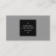 A stylish business card template with a 1.3in square black panel on the front. Name and Job title/business type within the front panel. The Name is created on two lines in block capitals with an extra space between each letter giving a nice high quality designer brand look. The square panel is also decorated with two rectangle motifs which have been created using one of Zazzle's useful symbol fonts. Email, web, address and telephony details nicely arranged on the reverse side of the card with a dark grey background. This card can also be further customised.