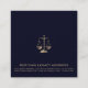 Make a powerful statement with this square business card featuring a striking justice scale logo on a rich navy blue background. Ideal for legal professionals, attorneys, and law firms, this card exudes professionalism and trust. Customise it with your name, title, and contact information on the back to create a distinctive, lasting impression. Upload your QR code on the back and network with confidence as you showcase your professional details. With its classic typography and elegant design, this business card sets you apart in the legal field.
