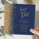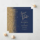 Square Navy Blue Gold Glitter Save the Date Announcement