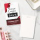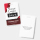 Easy to adjust company or business employee name badge with Red and wine colored striped background. All text is adjustable. Add your own company logo. Made for long horizontal styled logos. If the fast template adjustment does not work for your logo, click on the customize further option to be able to delete and add your logo to the card.