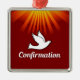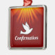 Square Ornament, Confimrtion, Dove on Red, Metal Tree Decoration