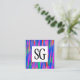 A square business card template with initials placed inside a square panel. This version also has a background image. The initials are in the Integrity bold font. Name and profession/job title along with telephone, email and website address in black on the reverse side on a white background, using variations of the Matt Antique font.