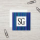 A square business card template with initials placed inside a square panel. This version also has a background image. The initials are in the Integrity bold font. Name and profession/job title along with telephone, email and website address in black on the reverse side on a white background, using variations of the Matt Antique font.