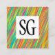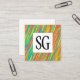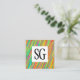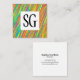 A square business card template with initials placed inside a square panel. This version also has a background image. The initials are in the Integrity bold font. Name and profession/job title along with telephone, email and website address in black on the reverse side on a white background, using variations of the Matt Antique font.