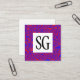 A square business card template with initials placed inside a square panel. This version also has a background image. The initials are in the Integrity bold font. Name and profession/job title along with telephone, email and website address in black on the reverse side on a white background, using variations of the Matt Antique font.