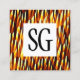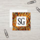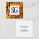 A square business card template with initials placed inside a square panel. This version also has a background image. The initials are in the Integrity bold font. Name and profession/job title along with telephone, email and website address in black on the reverse side on a white background, using variations of the Matt Antique font.