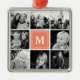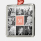 Square Photo Collage Coral Monogrammed Custom Metal Ornament
