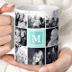 Square Photo Collage Teal Monogrammed Custom Coffee Mug