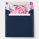 Square Pink Navy Roses Wedding Return Address Envelope