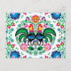 Square Polish Rooster Pattern Holiday Postcard