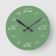 This wall clock features white square roots on a green background. Great for math students, teachers, or anyone looking for a unique clock.