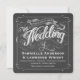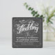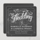Elegant Chalk Board Die-cut Wedding Invitations -- Swirly, curly, fancy swooshes and beautiful Victorian style retro typography makes an eye-catching black and white wedding invitation. Just add the bride and groom names and wedding information in this easy to use template. Inspired by vintage turn-of-the-century chalkboard poster, this nouveau style features ornate swash, swirls and banner framing hand-drawn style letter art on charcoal grey blackboard background. The bespoke custom invitation text is a beautiful mix of classic letterpress look typography with decorative script lettering that can be made suitable for both formal or semi-formal theme. Casual but classy modern style is perfect for trendy contemporary weddings with a touch of sophisticated but romantic rustic charm for traditional couples. Please contact us for help with customisation if you need additional room for your wedding details. Other sizes and styles available, along with matching postage stamps, coordinating bridal stationery, wedding packet accessories and shower favours. © March 2014 Wedding Trendy. Elements within this design have been licensed for commercial use -- all rights are protected by US and International copyright laws and may not be reproduced or published without permission or prior consent by the original artists and/or their licensing agents.