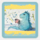 Square Stickers of a Dinosaur Drinking Coffee
