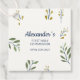 Modern square gift tag with a subtle botanical pattern of leaves and branches. Personalise the front with name, date, and “First Communion,” and add your own thank-you note on the back—an elegant detail for favours, gift wrapping, or event keepsakes.