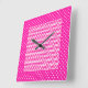A pretty, square Wall Clock with a pattern of decorative chevron shapes and polka dots in candy pink and white.