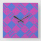 Square Wall Clock: Magenta, Blue Faux-Patchwork Clock
