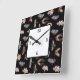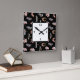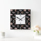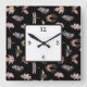 Wall clock with Nature prints. For living room or bedroom or nursery. Square wall clock with Pinecone, Acorn, Maple leaf, Oak leaf, Ginkgo leaf, Bee, Dragonfly and Butterfly. Mostly metallic copper on black.