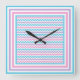 Square Wall Clock, Pink, Mauve, Turquoise Chevrons Clock