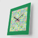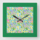 Square Wall Clock, Spring Primroses, Forest Green Square Wall Clock