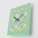 Square Wall Clock, Spring Primroses, Mint Green Square Wall Clock