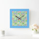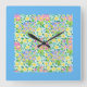 Square Wall Clock, Spring Primroses, Sky Blue Square Wall Clock