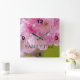 Square Wall Clock With Beautiful Pink Flowers