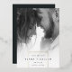 A simple and elegant save the date design for modern couples, featuring a vertical photo fading to white at the bottom. A gold foil geometric element bears your names, wedding date, and location in chic sans serif and italic lettering. Add additional details to the back.