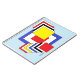 This geometric abstract artwork by Richard H. Fay features an array of squares in the primary colours of red, blue, and yellow, as well as black and white.