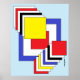 This geometric abstract artwork by Richard H. Fay features an array of squares in the primary colours of red, blue, and yellow, as well as black and white.