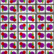 Brightly coloured circles stand stacked inside black and grey square frames in this geometric abstract art by Richard H. Fay.