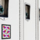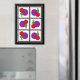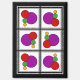 Brightly coloured circles stand stacked inside black and grey square frames in this geometric abstract art by Richard H. Fay.