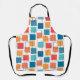 This apron has a geometric design of squares in coral, orange, yellow, and blues scattered about with their outlines.
