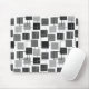 This mouse pad has a geometric design of squares in black and shades of grey scattered about with their outlines.