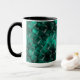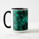 Stamped of some green or emerald background under geometric image, triangles which can cause a some 3D, elevation or depth perception.