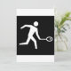 A squash player icon in white on a black background. This design looks really effective on these Invitation