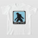 This funny sasquatch believer design features a large silhouette image of a lumbering BigFoot on a blue background, outlined and framed in black and white with rounded edges. Choose from dozens of tshirt and hoodie styles in sizes and colours for men, women and children squatch hunters. Dark apparel or gift item background colours will appear as though the image is stuck on with photo corners.