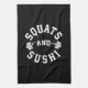 Squats and Sushi - Carbs and Leg Day - Funny Gym Tea Towel