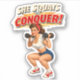This stylish and sassy athletic pin-up is working her glutes, playfully posing as she squats while lifting her dumbbells in this throwback scene. The retro inspired fitness art will give you the motivation you need to push thru your workouts while keeping a lighthearted vibe. This adorable, cheeky "She Squats To Conquer" graphic is a great statement sticker for your car, cooler, water bottle, laptop, notebook and more! • Sticker available in glossy white, matte white, and transparent. Transparent stickers show best on light surfaces. For darker items, a white sticker base is recommended for better visibility and contrast. •