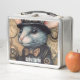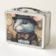 This is a standard metal lunchbox that appears to work just fine. We designed this box ourselves with an uploaded photo and custom text on the front and back. It looks absolutely beautiful except the front of the lunchbox is not centered like it shows in the photo. The print borders don't align with the inset flat part of the box where the preview photo online showed it perfectly centered in there. The back looks nice and centered though.