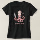 Pink squid chef cartoon with moustache holding knife and cooking fork. Custom text.