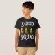 100% cotton so perfect for summer, It is a nicely designed t-shirt, the fabric is soft and the seams finished well, the body of the t shirt has no side seams. I bought a medium size for my two grandsons, aged 9 and 8 it will be slightly big on them but I would rather that than too small